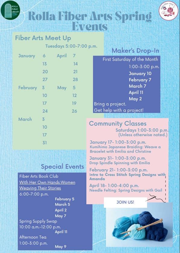 Join us for a weekly gathering dedicated to the Fiber Arts. All fiber crafts welcome. You do not need to be an expert to come knit, crochet, weave, embroider, sew, o quilt with us. All levels welcome. Bring a friend or two and come learn a new stitch or technique, share your current projects or your New Year fiber resolutions with our local Fiber Tribe. Some materials and tools available at the Library.